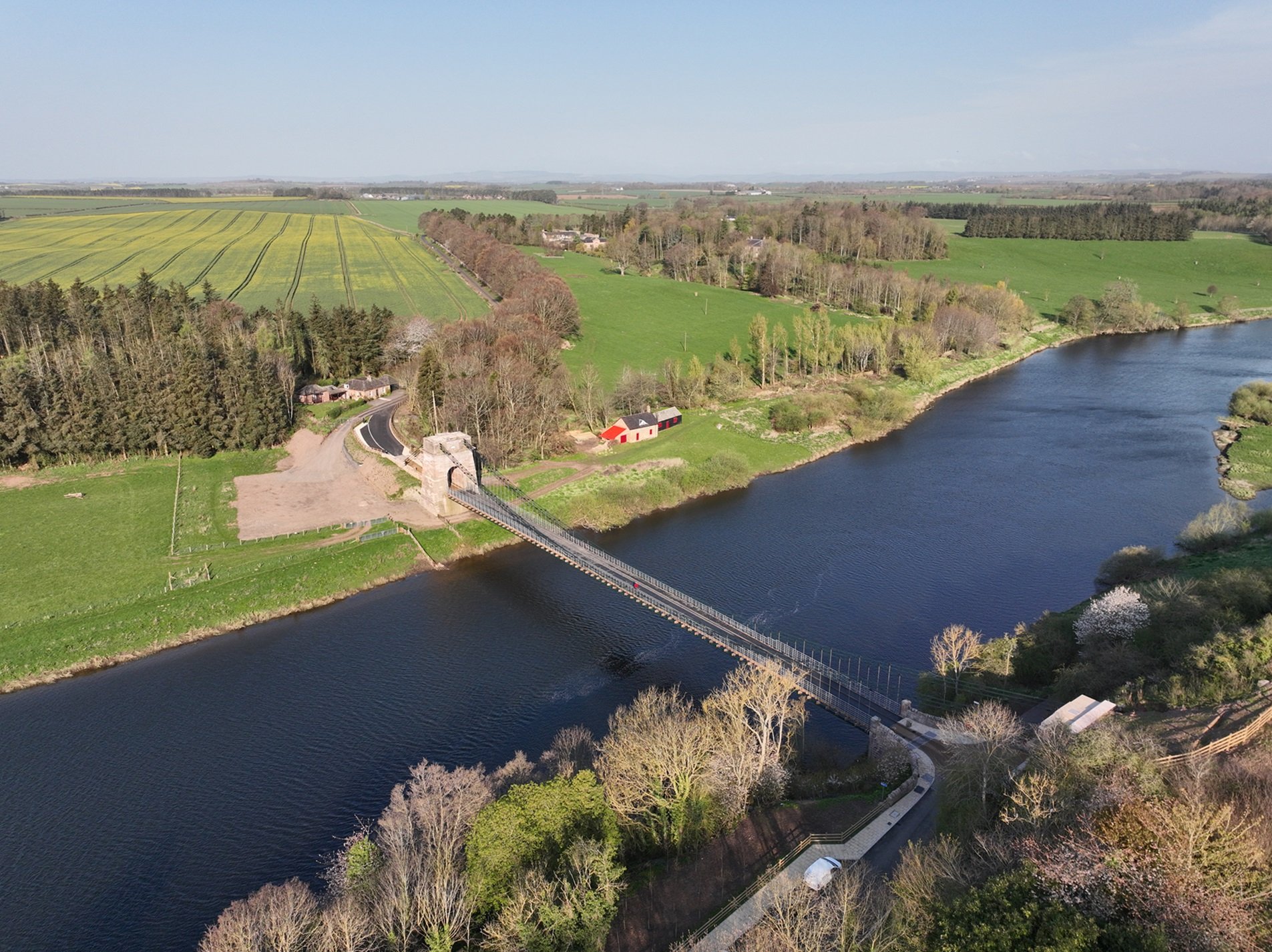 The crossing over the River Tweed from Horncliffe in Northumberland to Fishwick in Berwickshire has a single span of 449ft (137m) and was the longest wrought iron suspension bridge in the world when it opened in 1820.