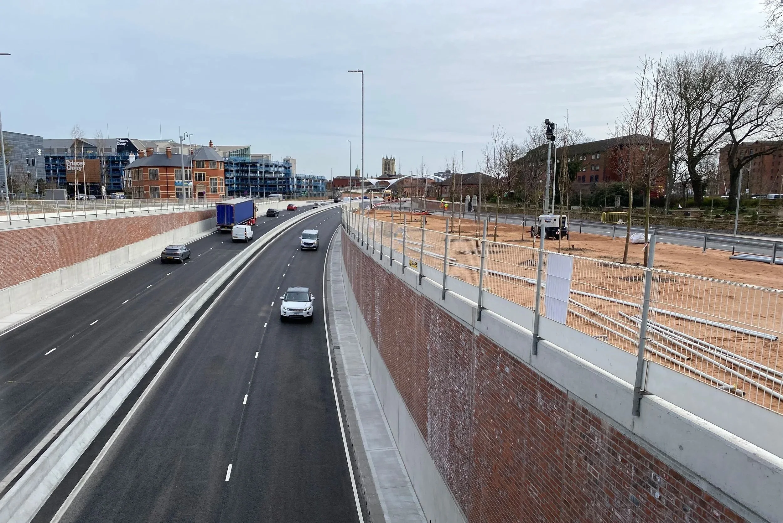A new junction has been created by lowering the level of the A63 at the Mytongate junction. Ferensway and Commercial Road cross the A63, creating a split-level junction. Between Princes Dock Street and Market Place the eastbound carriageway has been widened to three lanes.