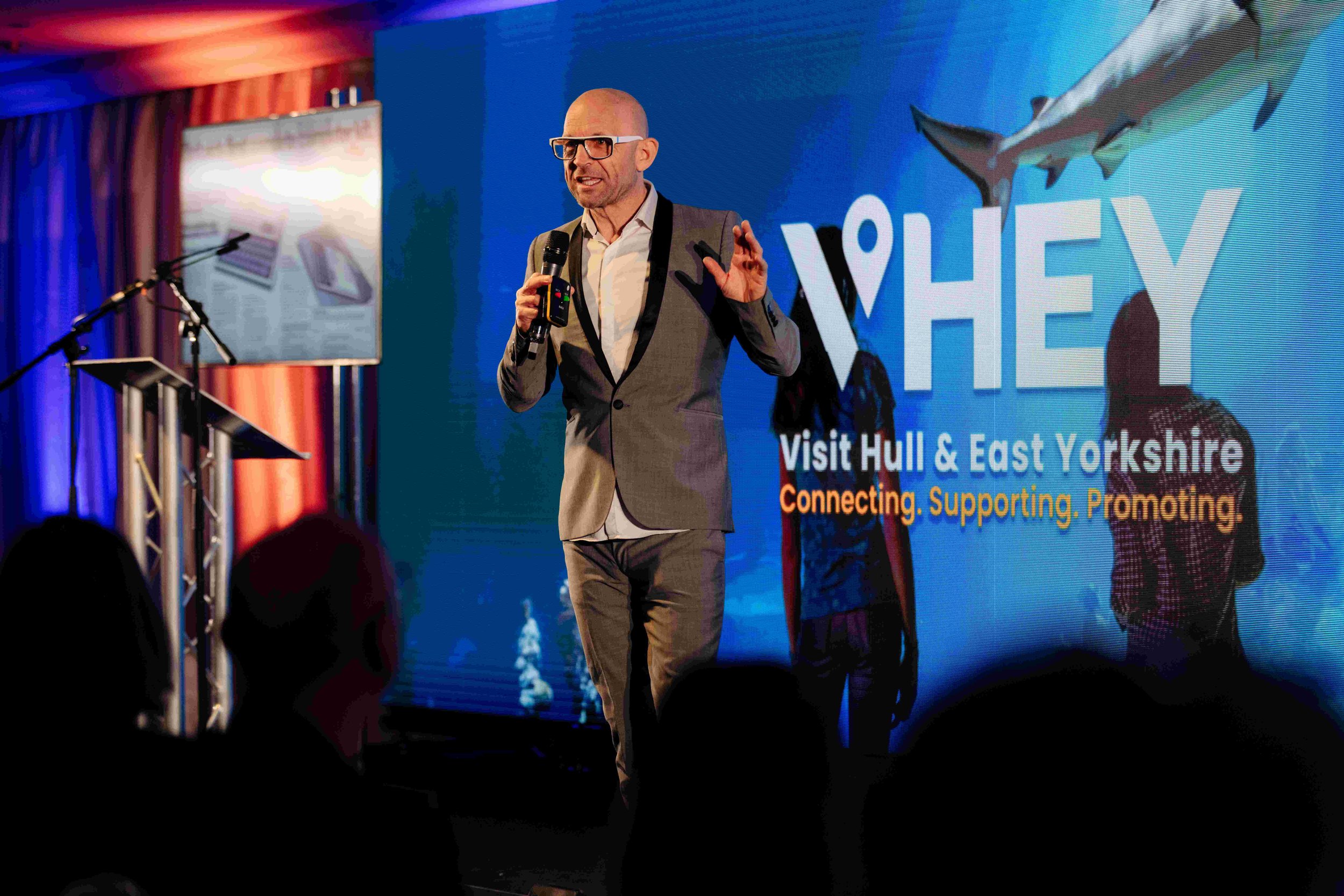 HIGH ENERGY: Jason Bradbury speaking at the Visit Hull and East Yorkshire (VHEY) Tourism Conference