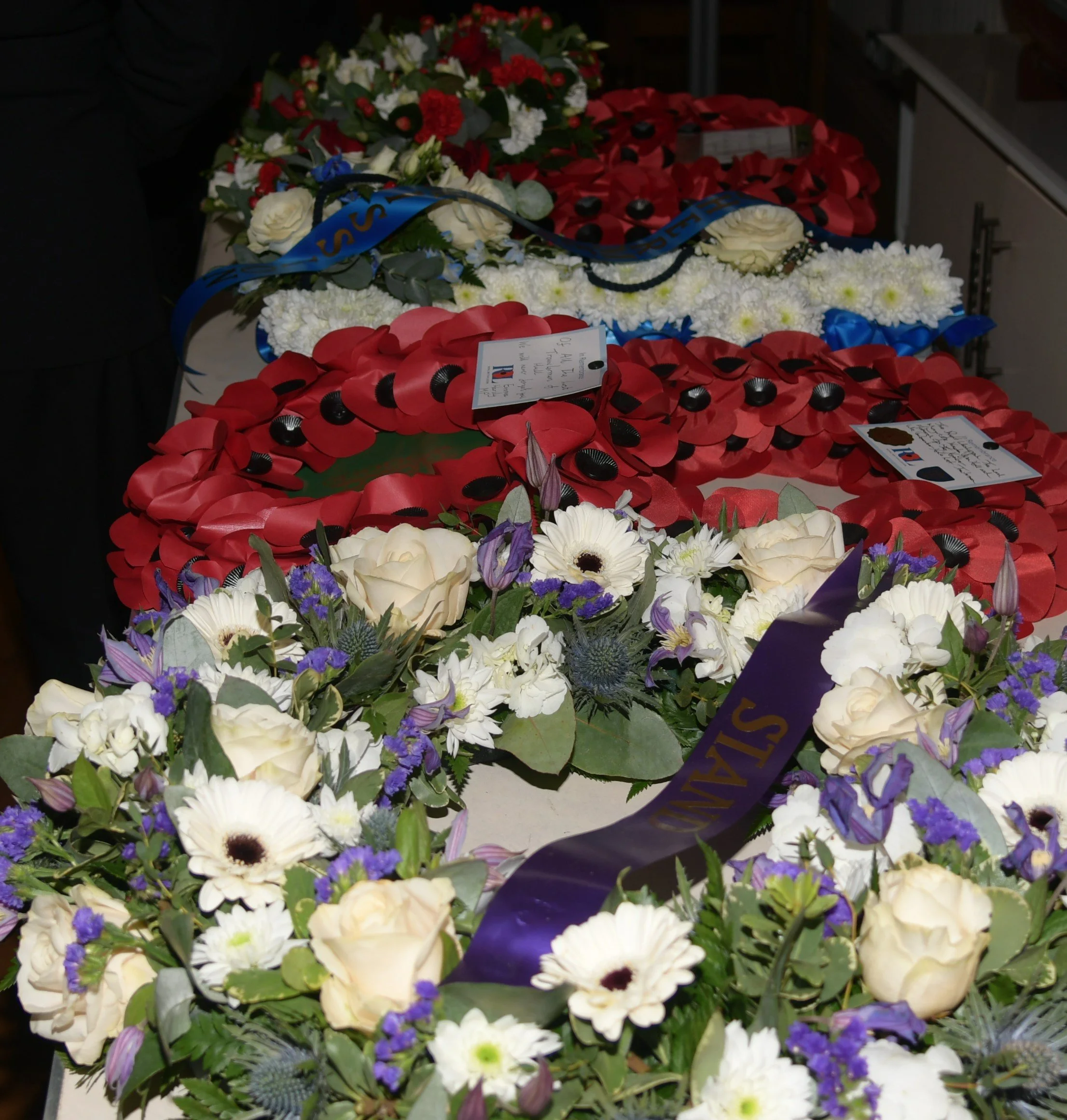 REMEMBRANCE: Wreaths laid at today’s service. Picture by Mike Waudby / Fishing News
