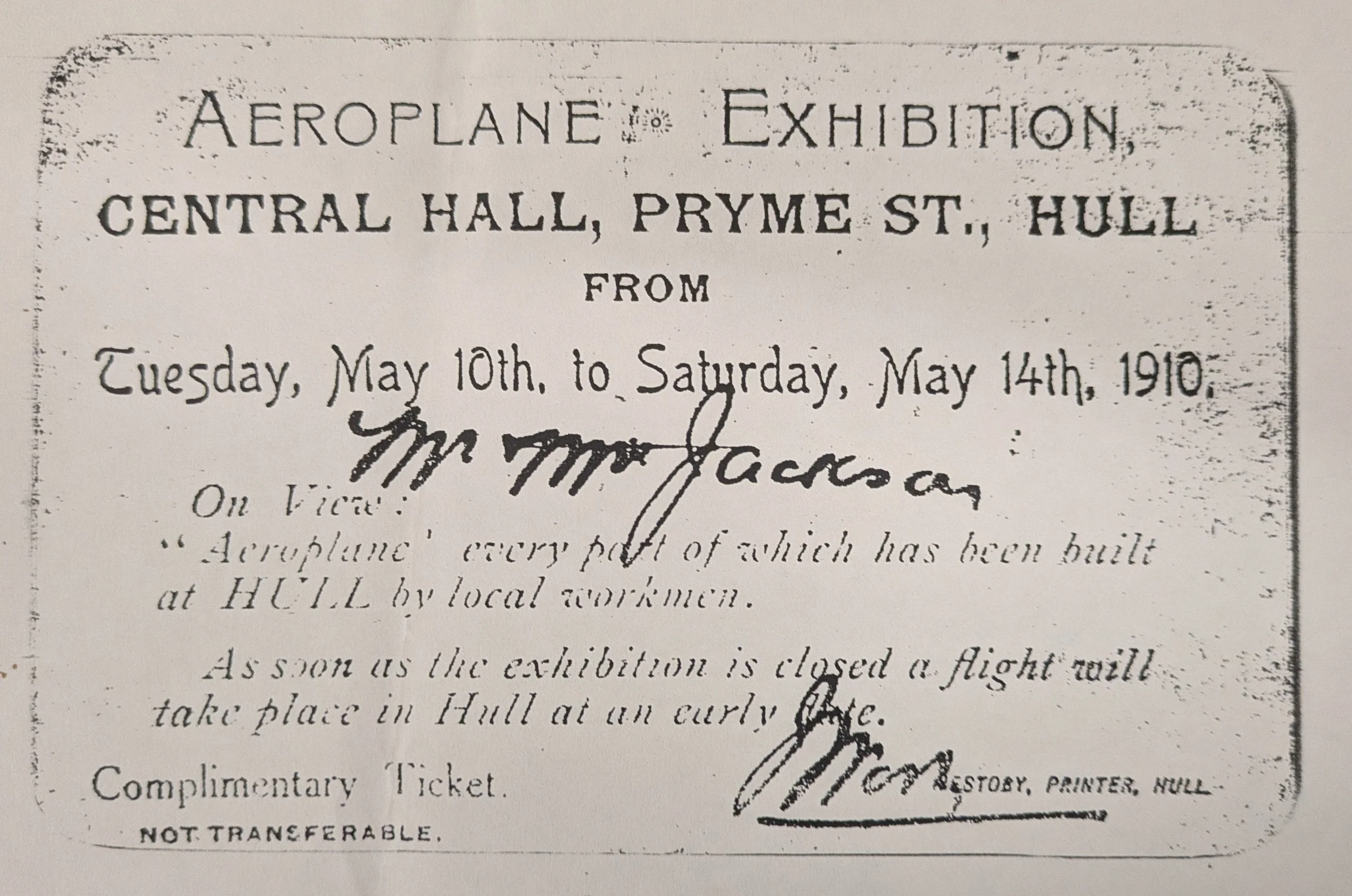TICKET TO FLY: An exhibition invitation to the Hull-made aeroplane