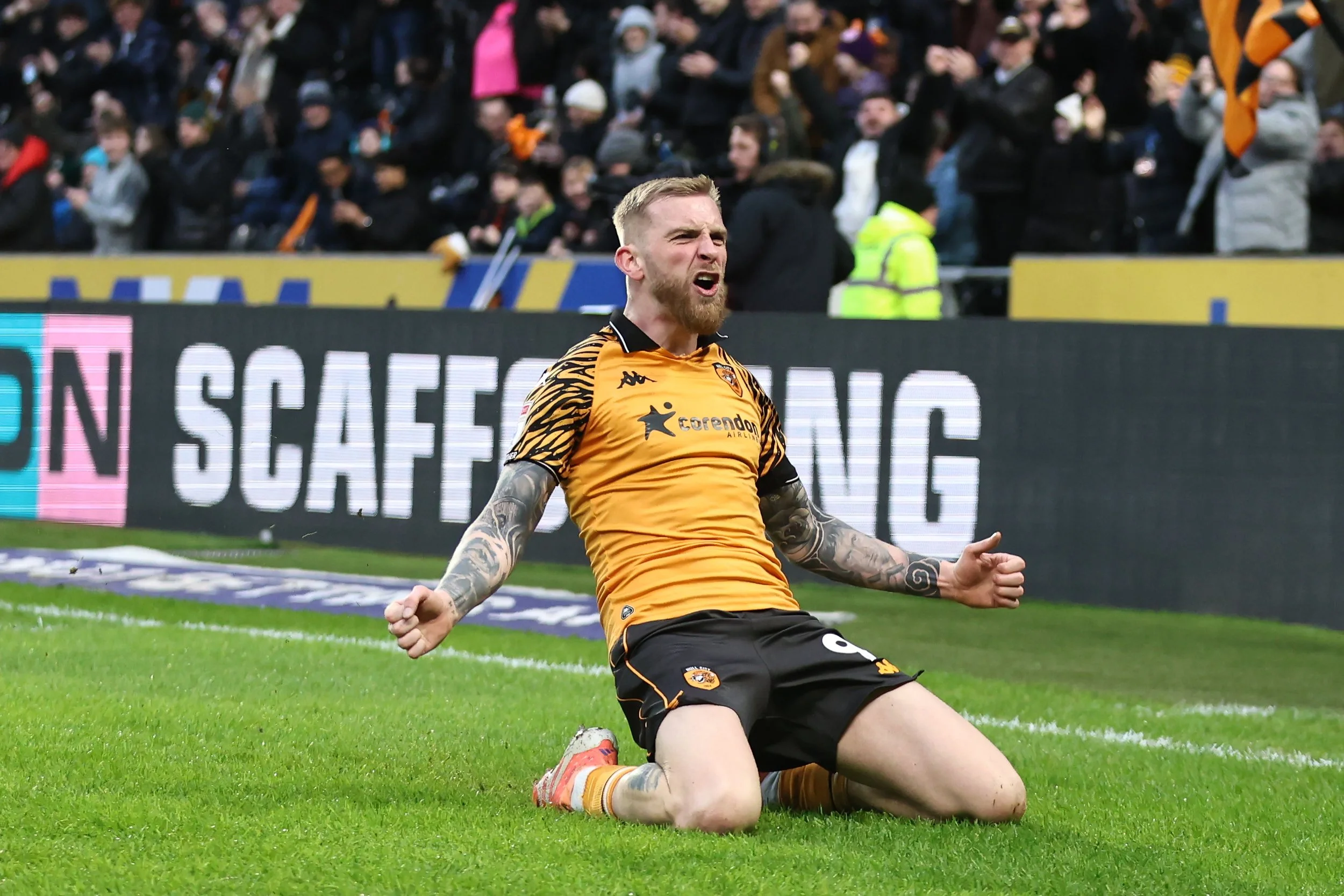 GOING BEHIND: Bristol City’s Ross McCrorie celebrates putting the Robins ahead. Pictures courtesy of Hull City