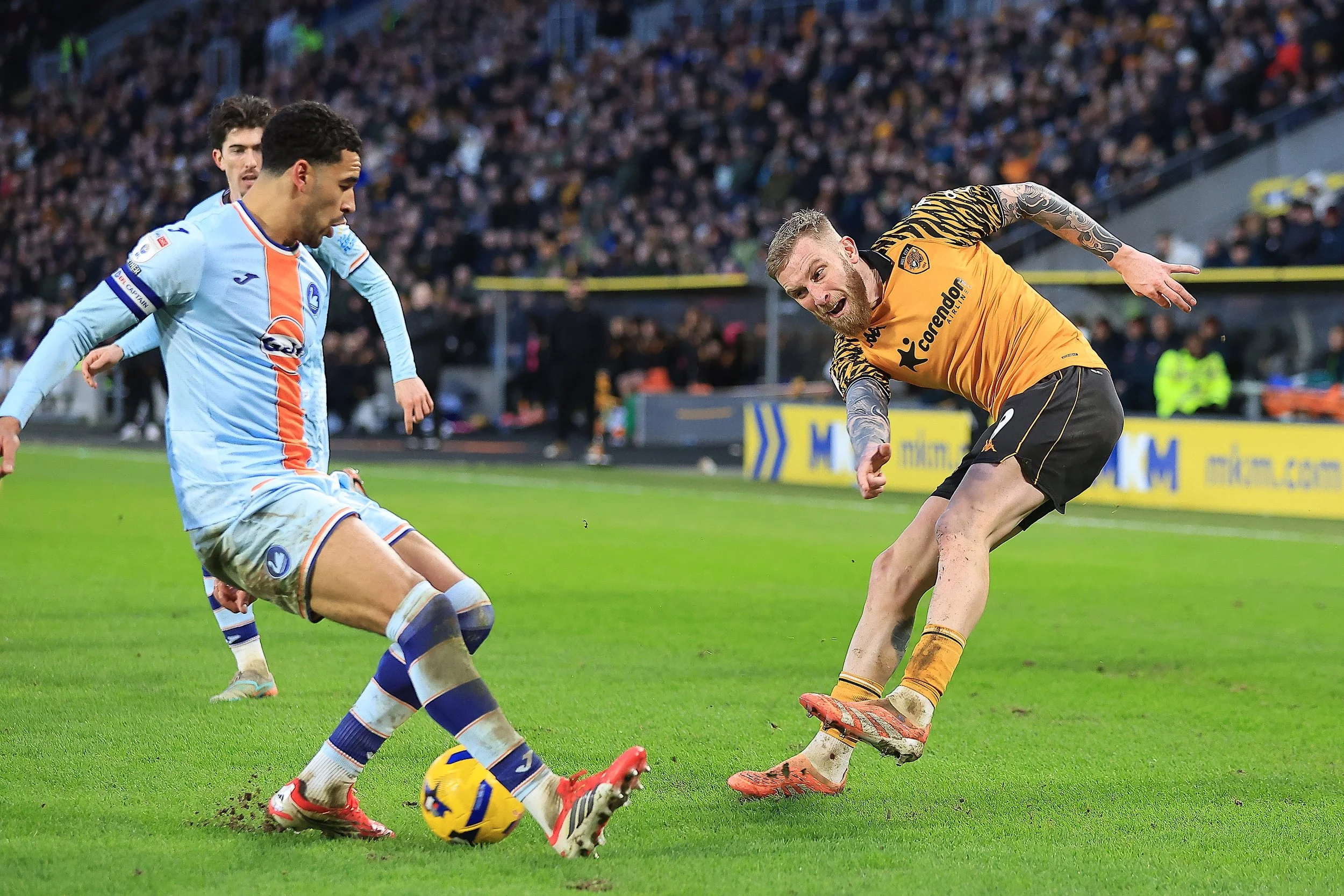 City were the brighter side early on, without carving out much in the way of clear chances. An eighth-minute corner was cleared, before former Tiger Josh Tymon embarked on a long run down the other end, only to be stopped by Gelhardt, who then fed Charlie Hughes. His ambitious cross-field ball found Liam Millar, but the move fizzled out with no one able to meet the delivery in the box.