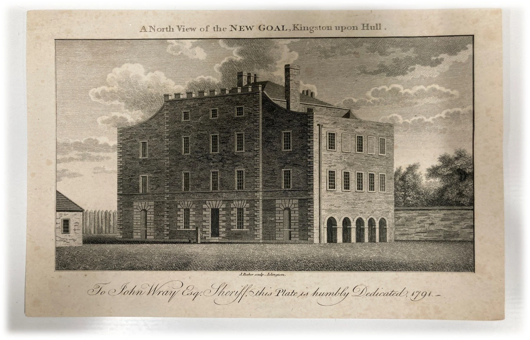 Myton later became the centre of criminal punishment. Hull’s former jail, located between the Market Place and Queen Street became insufficient and was replaced with a new jail, situated just beyond the town walls in Myton on Castle Street. Originally built to house 22 prisoners, it opened in 1785, but this too became inadequate with more than 30 being housed at any one time.
